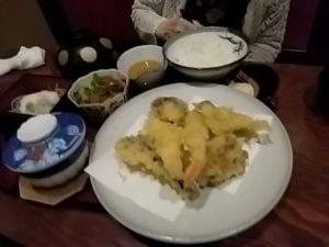 母は、大きなエビ入っているサクサクの天ぷら御膳